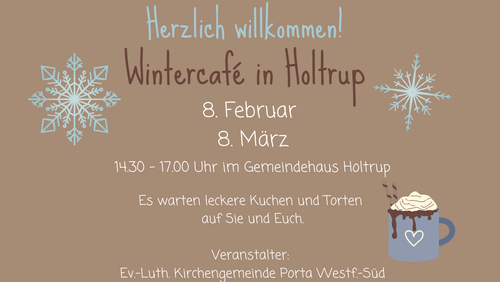 Herzlich willkommen zum Wintercafé in Holtrup. Hier erwarten Sie Kaffee, Tee und leckere Kuchen. Dabei lässt es sich gut klönen oder auch spielen.